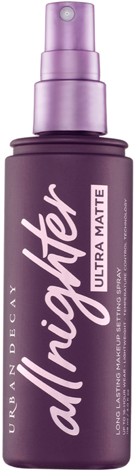 All Nighter Setting Spray Ultra Matte mantiene el maquillaje fresco hasta por 16 horas sin manchas ni decoloración.